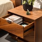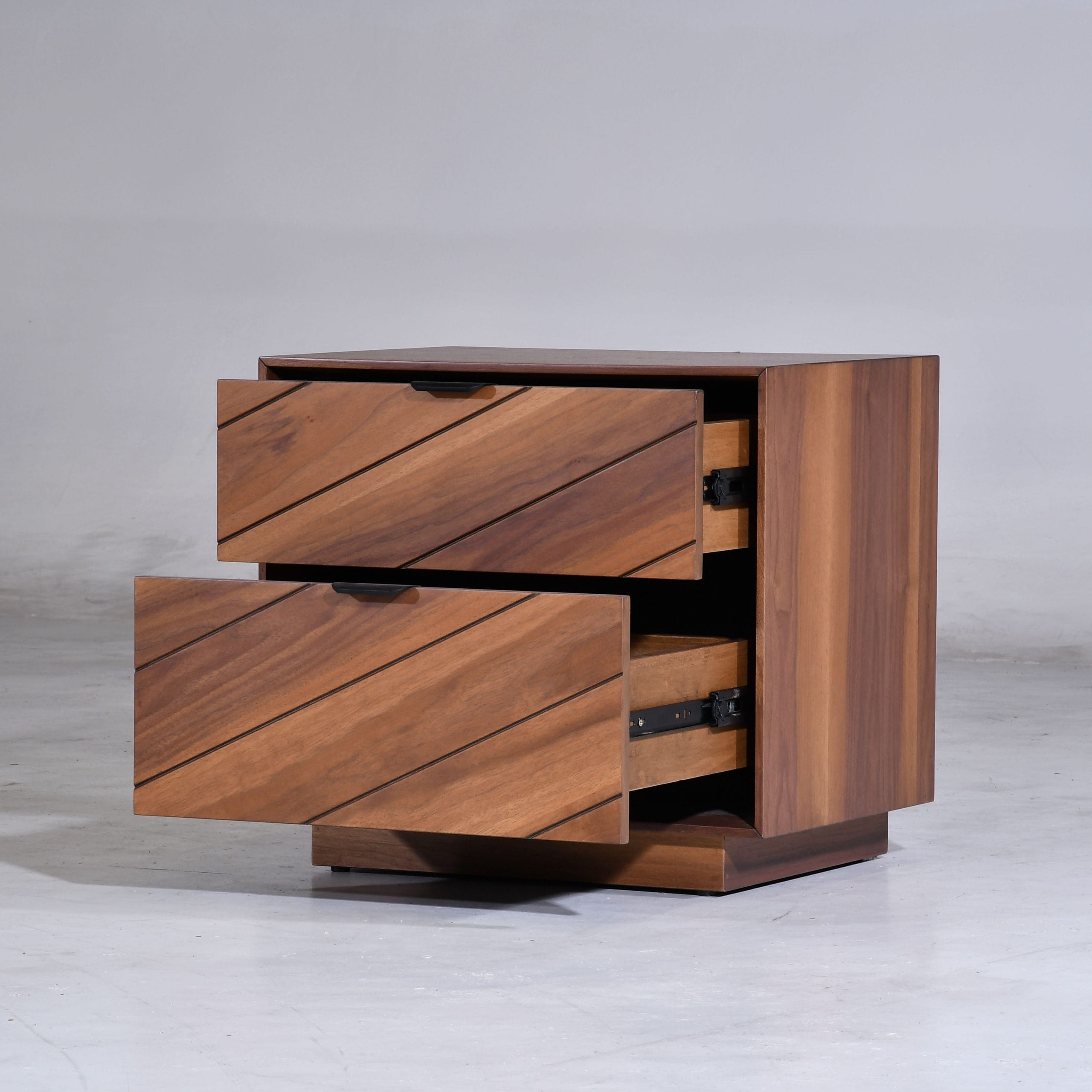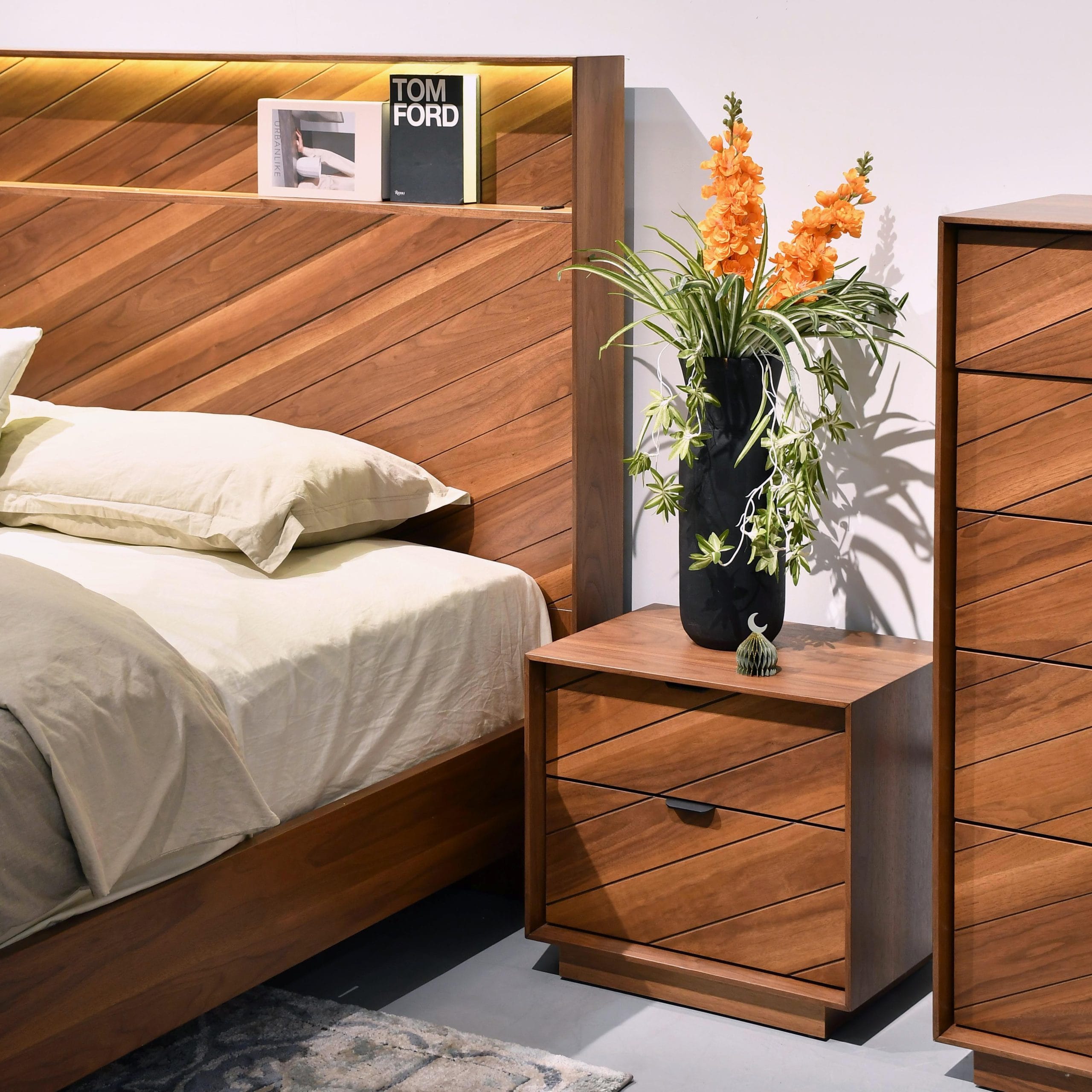 Experience modern elegance with Santo, a 2-drawer bedside table characterized by its striking walnut grain patterns