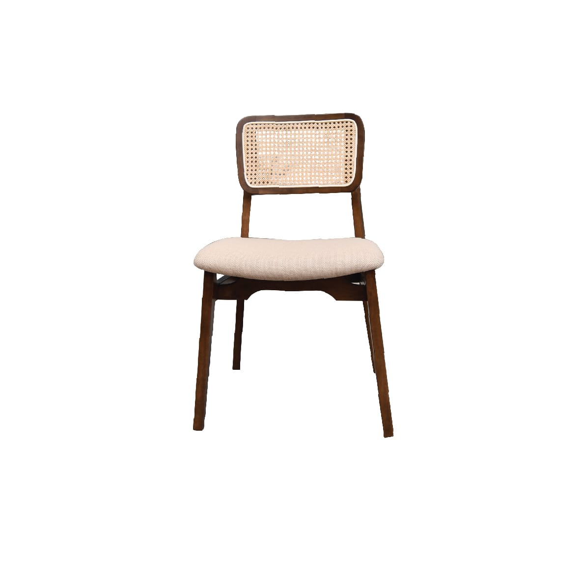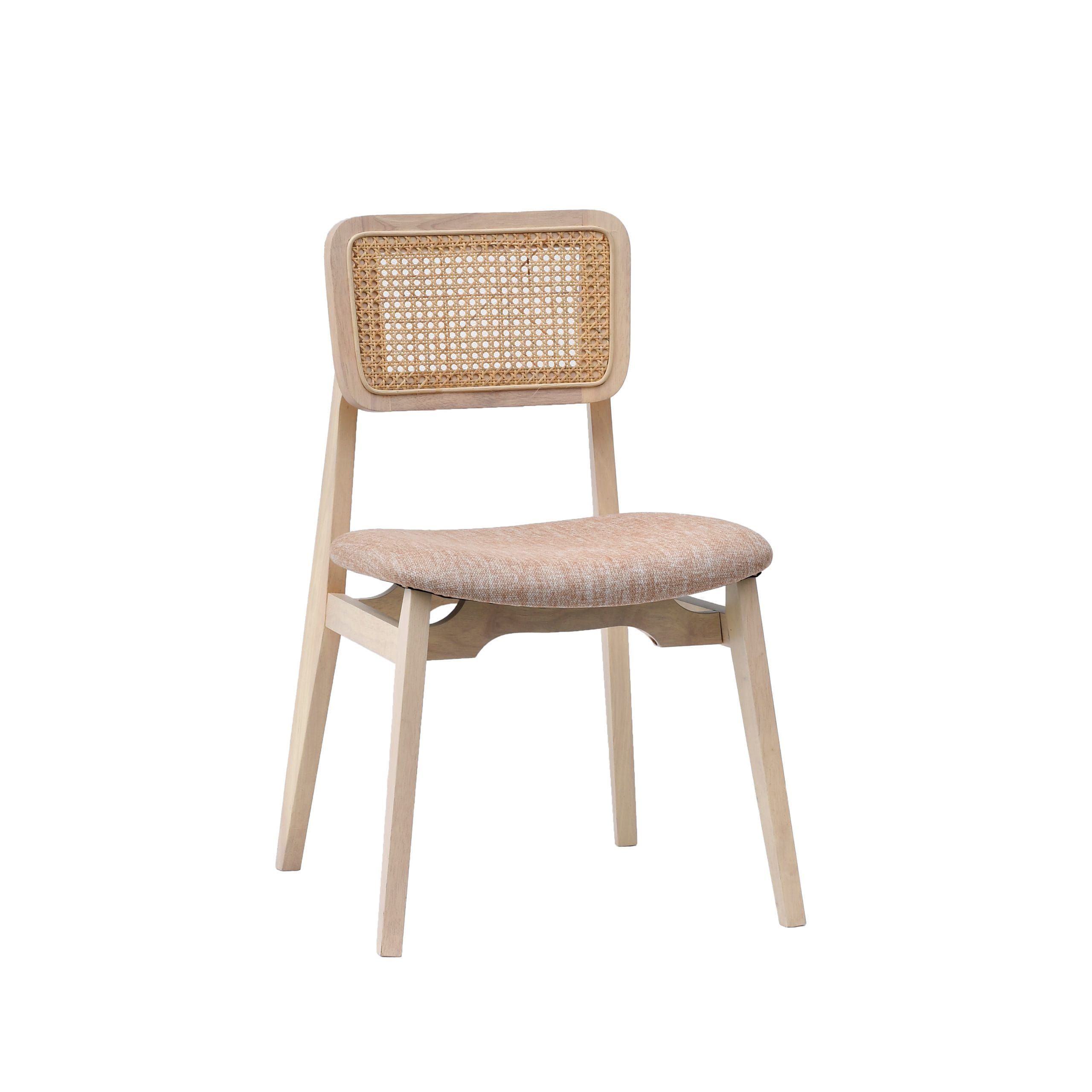 Frame: Solid Rubberwood; Back: Natural rattan; Seat: Fabric